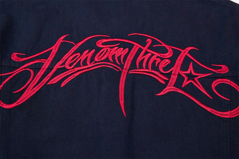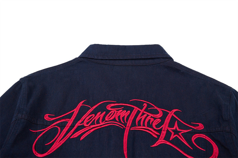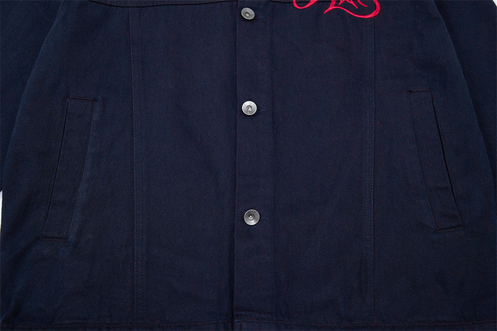 Embroidery detailing adds a signature touch of craftsmanship to the piece, while the single-breasted closure and lapel collar keep the structure grounded in timeless workwear roots. Inlaid pockets and a straight hem round out the functional design. Loose-fitting and lightweight, the Gregory layers easily over tees and tank tops for warm-weather street style with character.