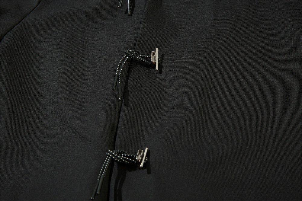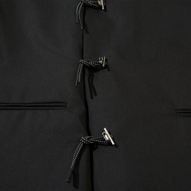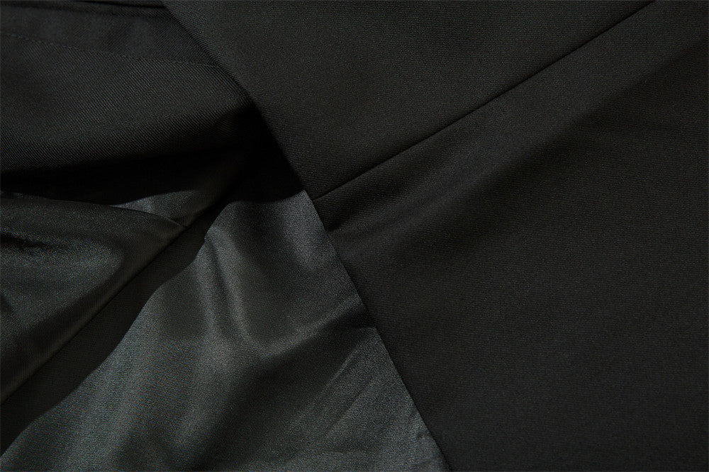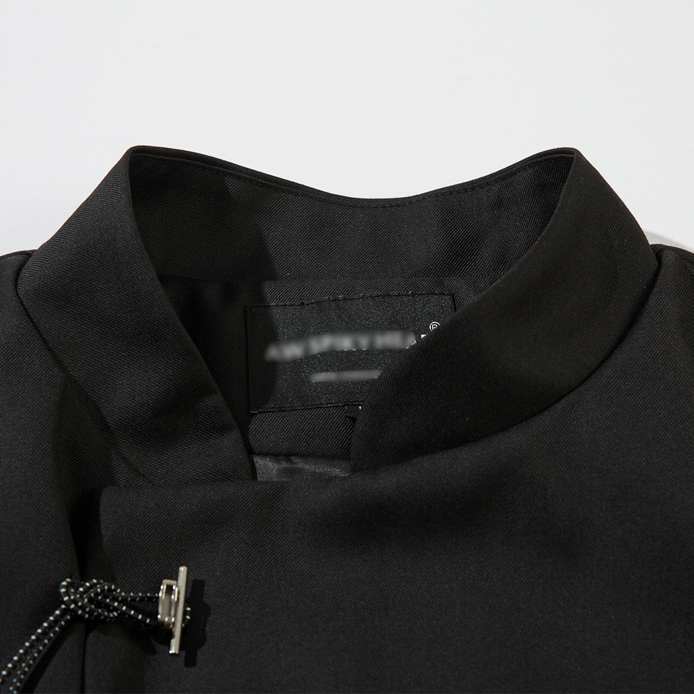 Button decoration adds a refined, functional accent to the minimal design, while the single-breasted closure and straight hem keep the silhouette crisp and versatile. The no-iron treatment ensures the jacket holds its shape and finish with minimal upkeep. Available in Black, a dependable spring-to-autumn outer layer that pairs with dark trousers and clean footwear for a polished, everyday street look.