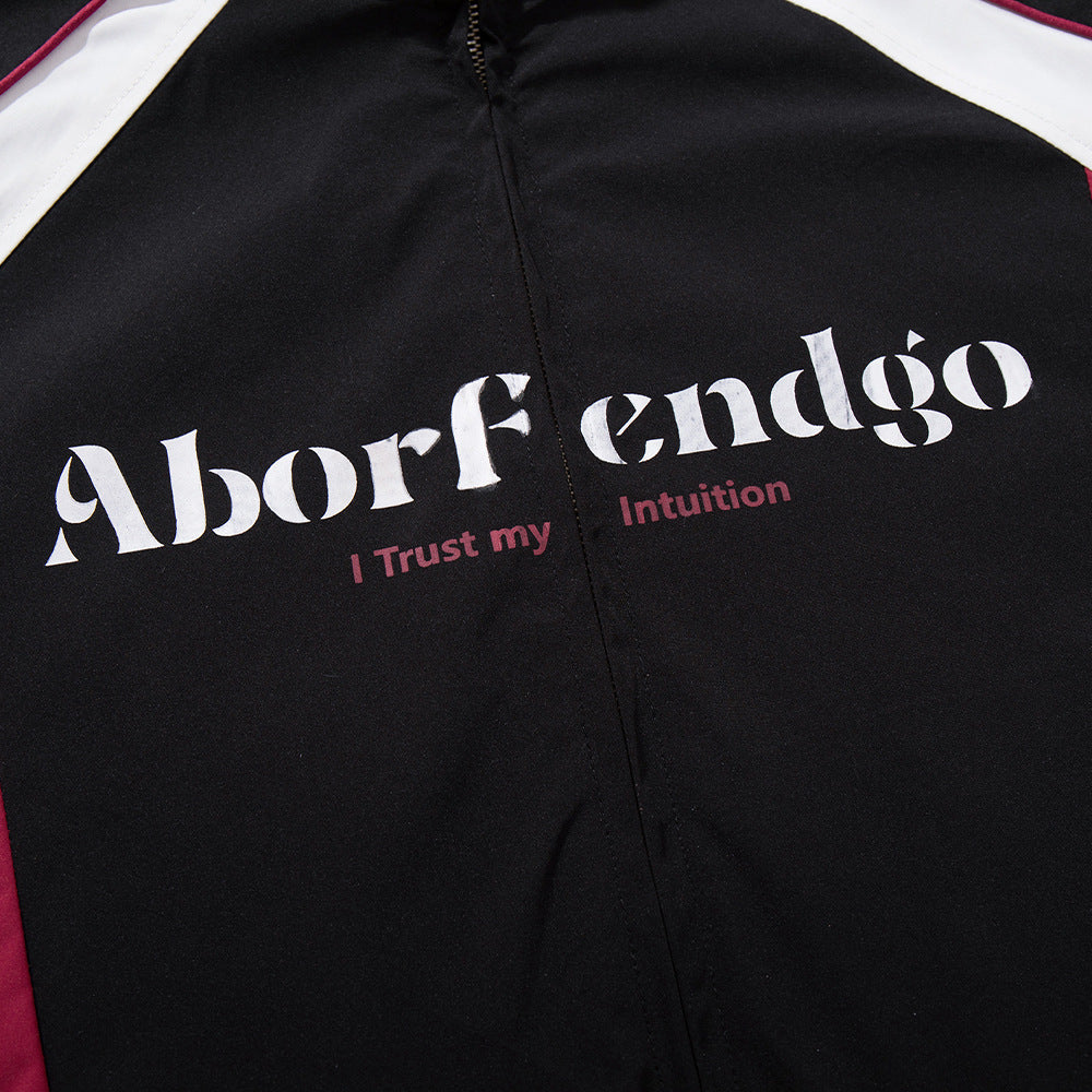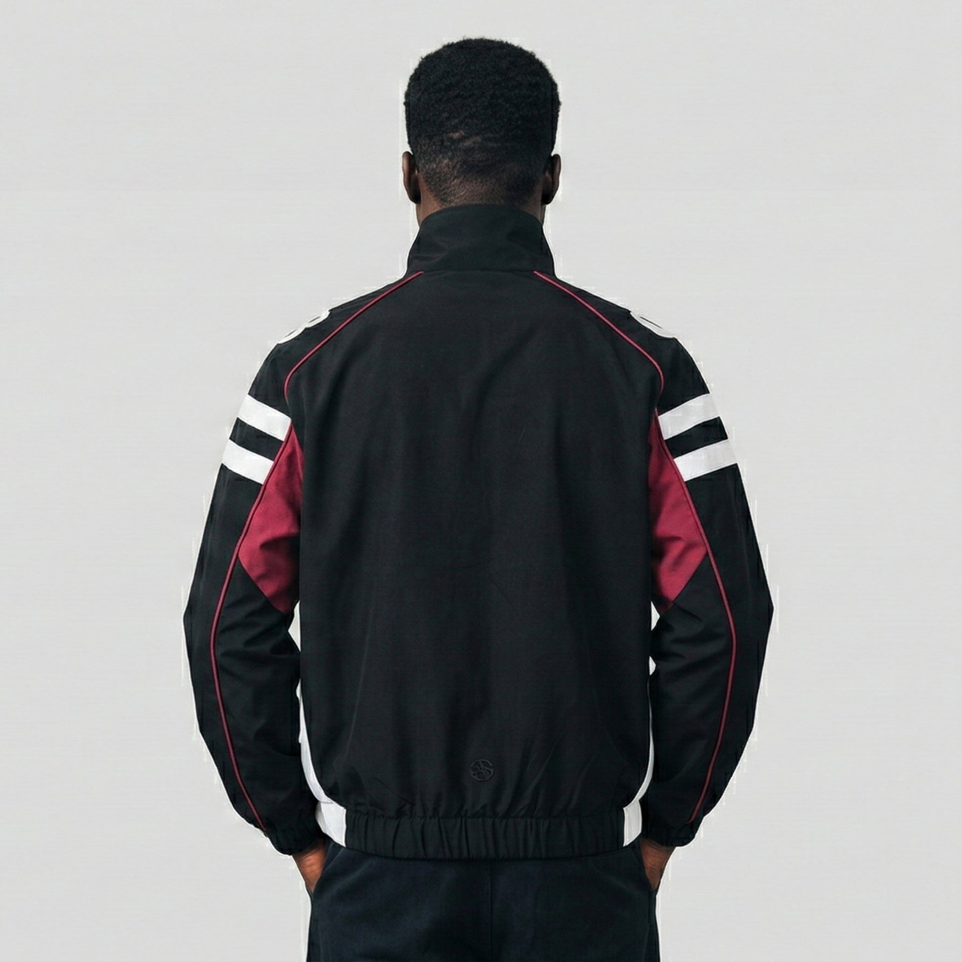 A graphic-forward jacket that brings printed letter detailing to clean polyester construction. Built from 100% polyester with full polyester lining, it delivers structured feel with practical lightness. The loose fit and stand collar create an intentional profile that bridges casual and semi-dressed contexts.