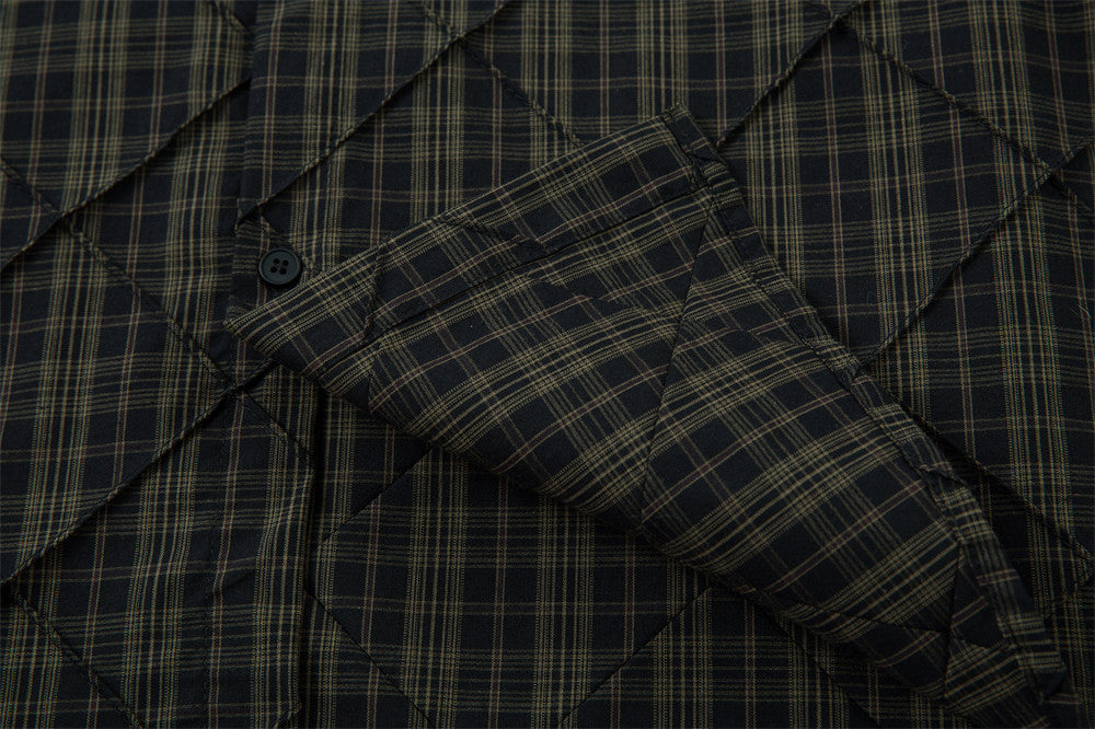 The Kane takes a classic plaid base and elevates it with diamond quilted stitching for a textured, layered effect. Crafted from 100% cotton, this button-front shirt delivers a natural, breathable feel grounded in workwear authenticity. The loose fit and lapel collar create a relaxed, oversized profile that works effortlessly across casual settings.
