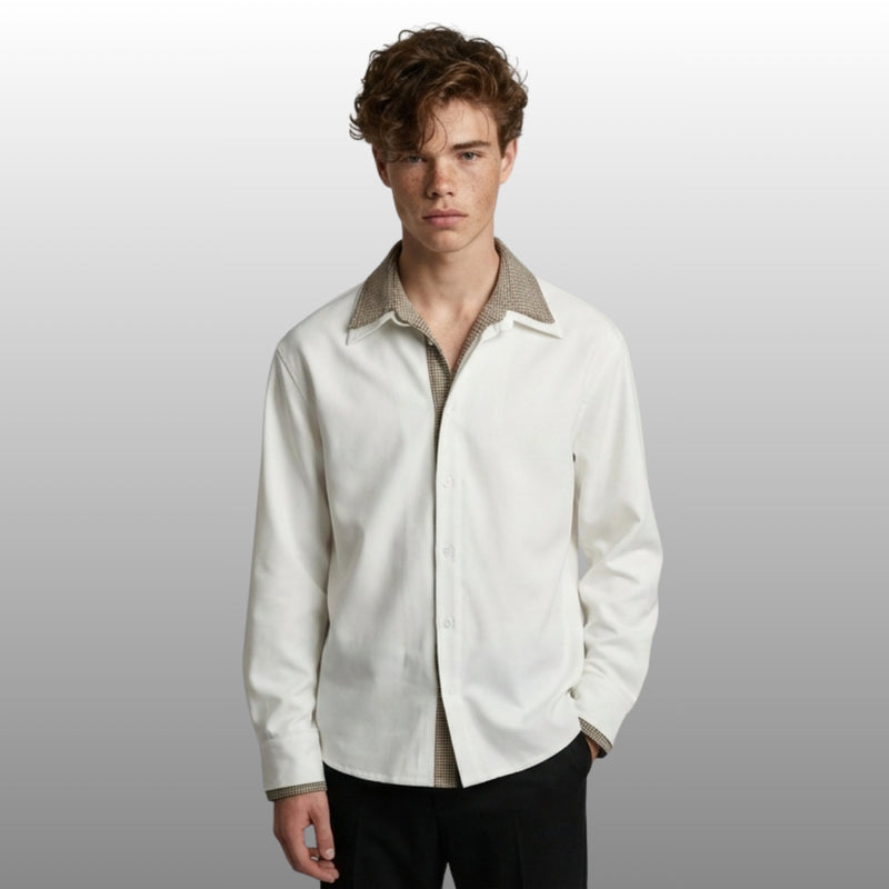 The Russell takes the classic plaid shirt and adds a contemporary edge with collage and splicing craftsmanship. Built from an 80% polyester blend, it delivers a breathable, easy-wearing fabric that works through spring and autumn transitions. The lapel collar and loose fit create a relaxed, layered profile.