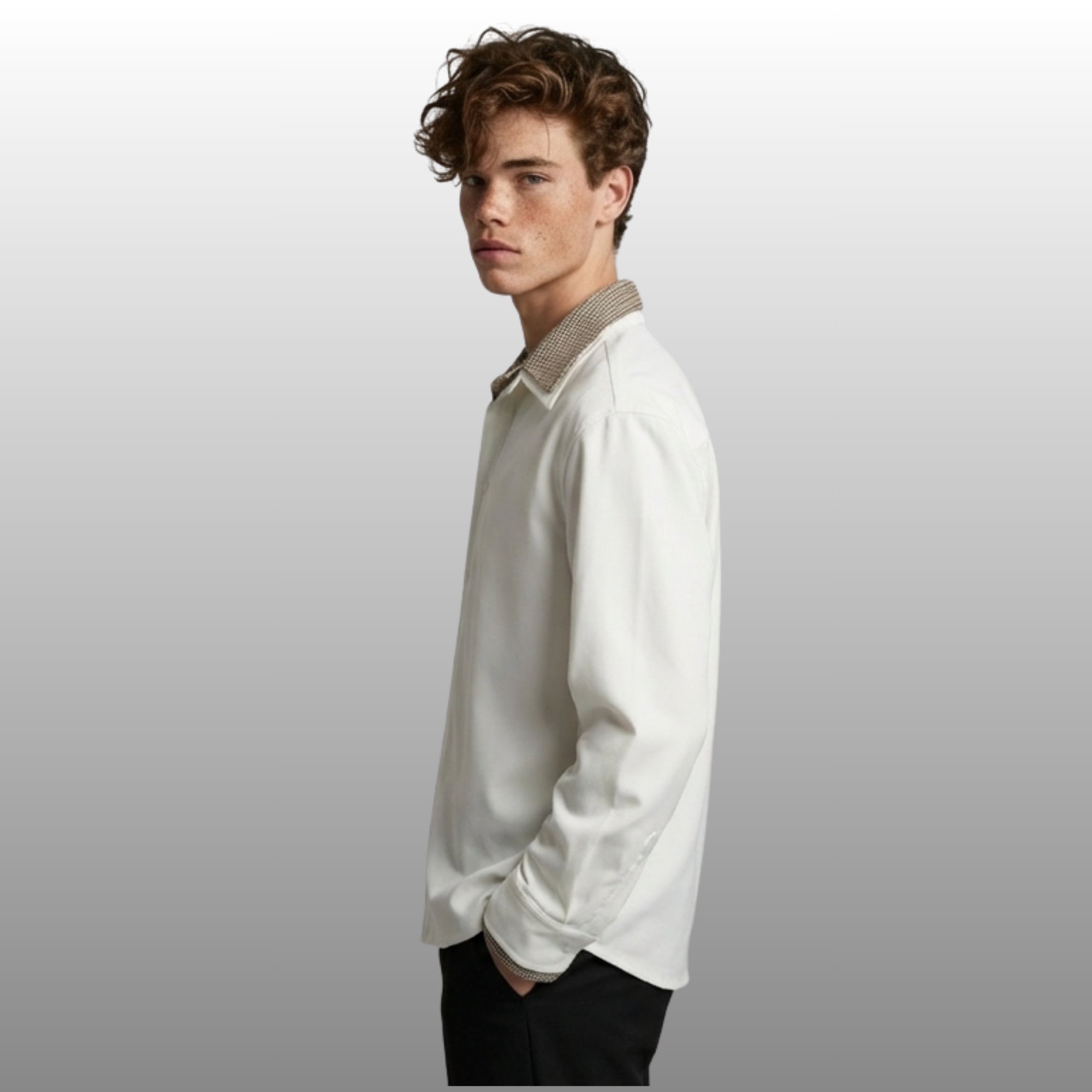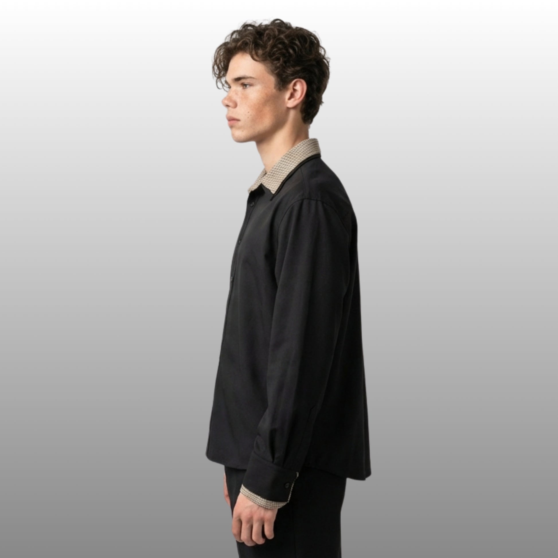 Colour-matching detail and grid patterning bring visual depth to the design, while the long sleeves and button-front closure give it versatility across styling, worn buttoned as a standalone piece or open as a lightweight outer layer. Available in Black and White, the Russell pairs effortlessly with relaxed trousers and minimal basics for a street-ready layered look with character.