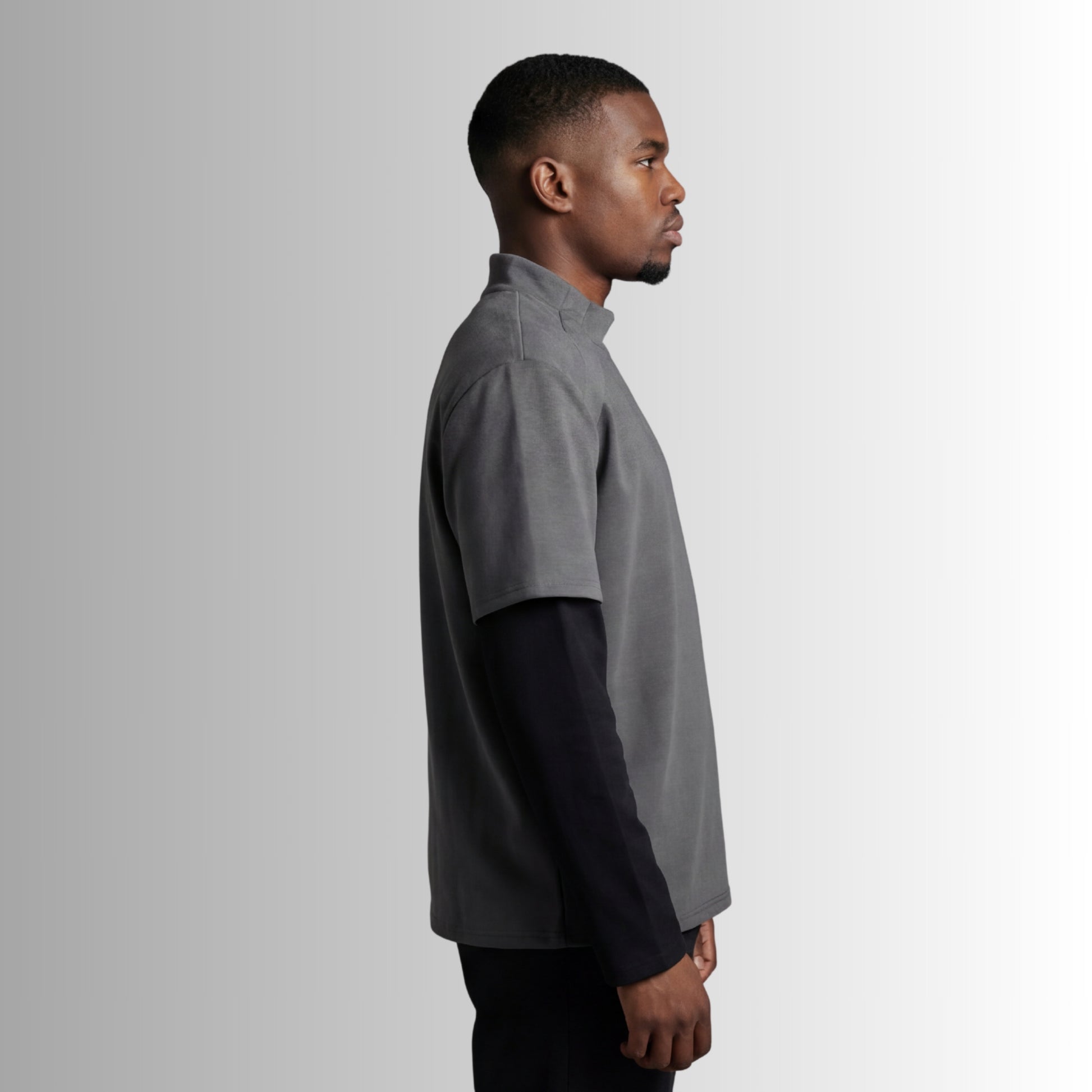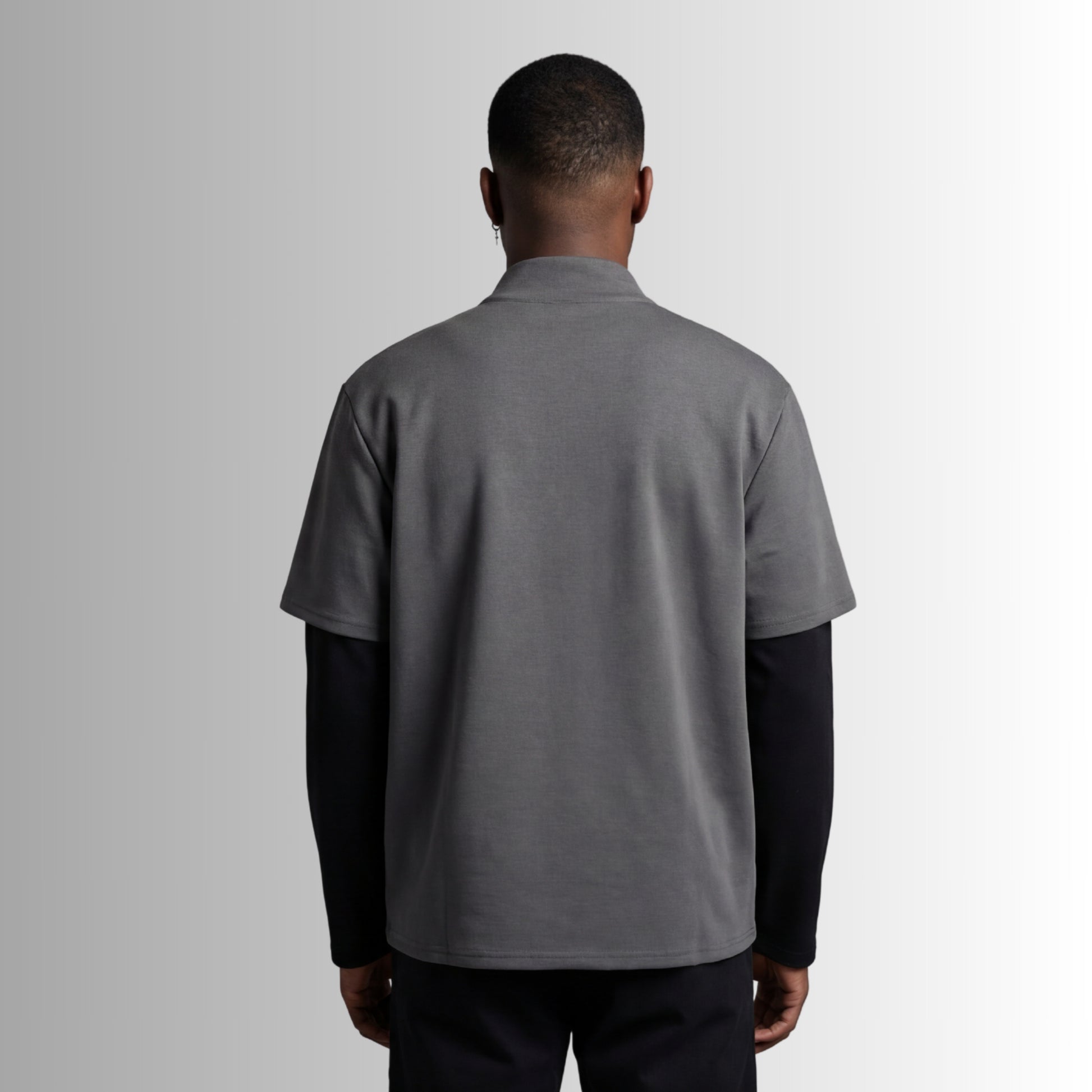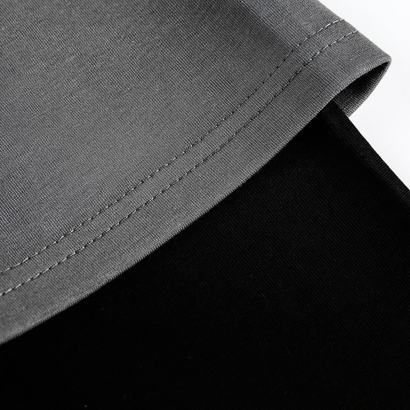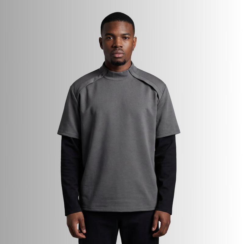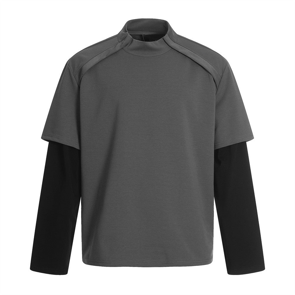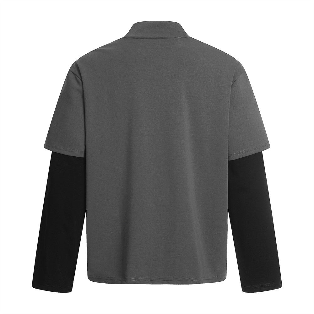 Collage and splicing craftsmanship brings visual depth to the colour-matched design, while the cotton-blend fabric keeps the weight comfortable for extended everyday wear. A dependable layering piece for spring and autumn — wear it as a standalone or under a jacket for added dimension. Available in Grey, pair with dark trousers and boots for a clean, tonal street look.