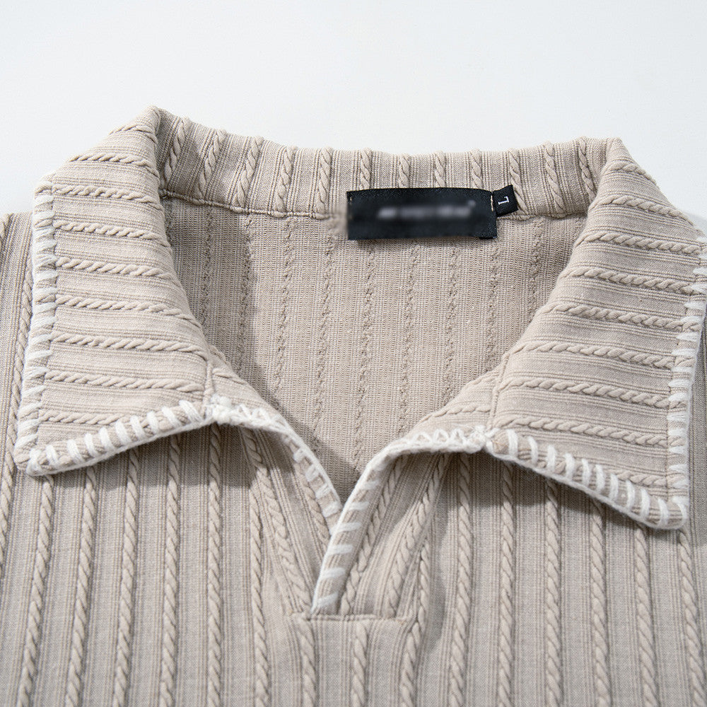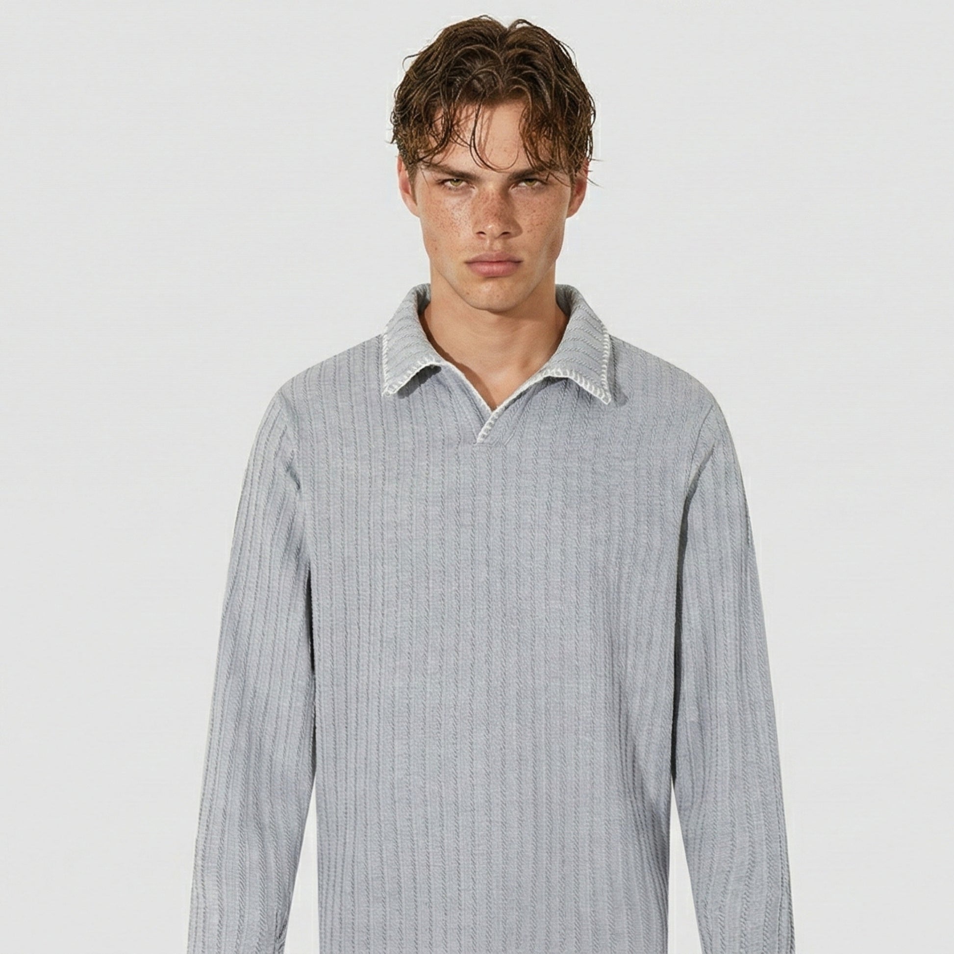 A refined pullover that brings ribbed hem detailing and breathable polyester construction to contemporary basics. Built from 66% polyester with standard weight, it delivers comfortable structure that works across seasons. The loose fit and lapel collar create a casual yet refined profile.