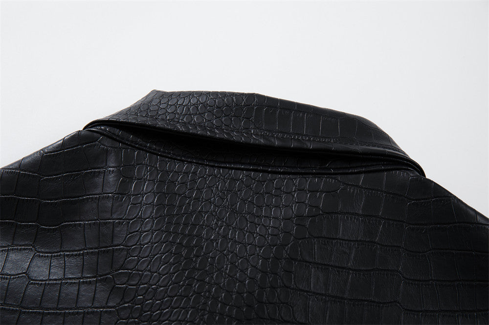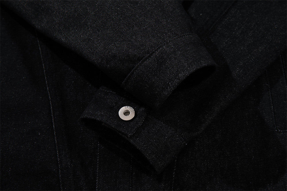 Collage and splicing craftsmanship brings visual depth through colour-blocked panelling without feeling overwrought. Button decoration adds subtle detailing that feels grounded and intentional. The no-iron treatment keeps the design crisp and accessible through daily wear. Welt pockets provide practical functionality while maintaining clean lines. A mid-length construction offers balanced coverage for versatile styling contexts. Available in Black, this piece works as a statement outer layer with character. Pair with relaxed trousers and minimal accessories for a sharp, street-ready look.