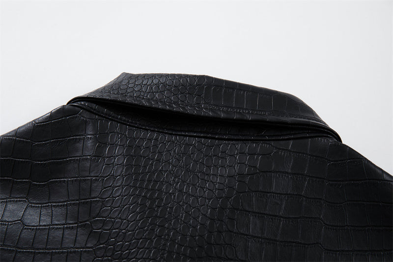 Available in Black, this piece works as a statement outer layer with character. Pair with relaxed trousers and minimal accessories for a sharp, street-ready look.