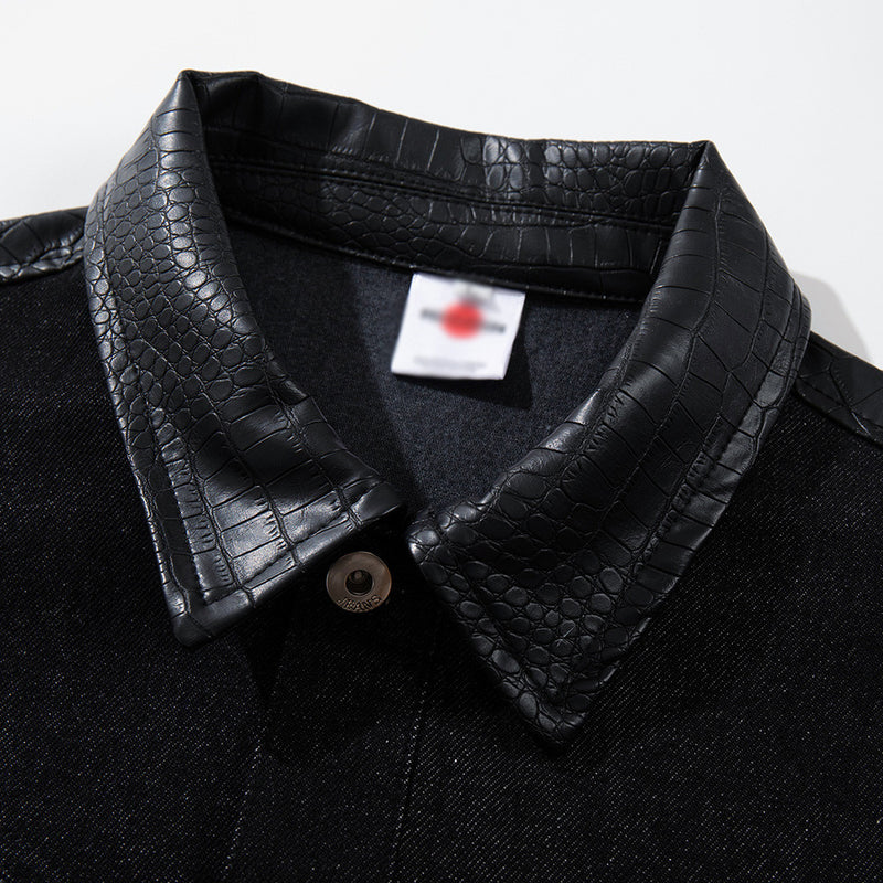 A contemporary take on classic denim that brings spliced construction and intentional colour-blocking to heritage craftsmanship. Built from 100% cotton denim, it delivers authentic denim feel with thoughtful contemporary styling. The loose fit and lapel collar create a relaxed profile perfect for everyday layering.