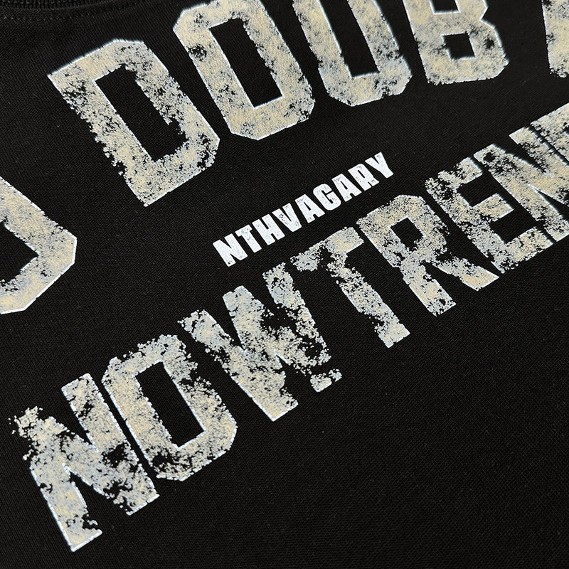 Printed and dyed letter artwork adds a graphic, street-forward edge to the design, while the heavyweight cotton fabric provides warmth and durability through the cooler months. A dependable spring-to-autumn piece that anchors any casual outfit. Available in Black and Camel, pair with wide-leg trousers and layered accessories for a grounded, statement look.