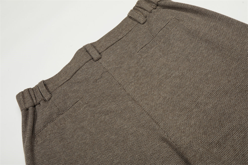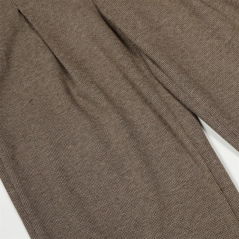Pleat detailing and pocket decoration bring subtle texture to the solid black colourway, while the mid-waist rise and zipper fly keep the fit structured yet comfortable. A true four-season staple — pair with tailored outerwear for a refined look, or dress down with a simple tee and sneakers for off-duty style.