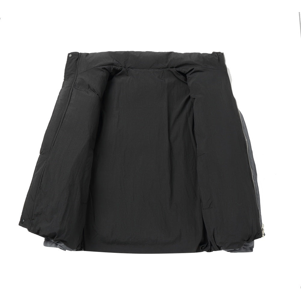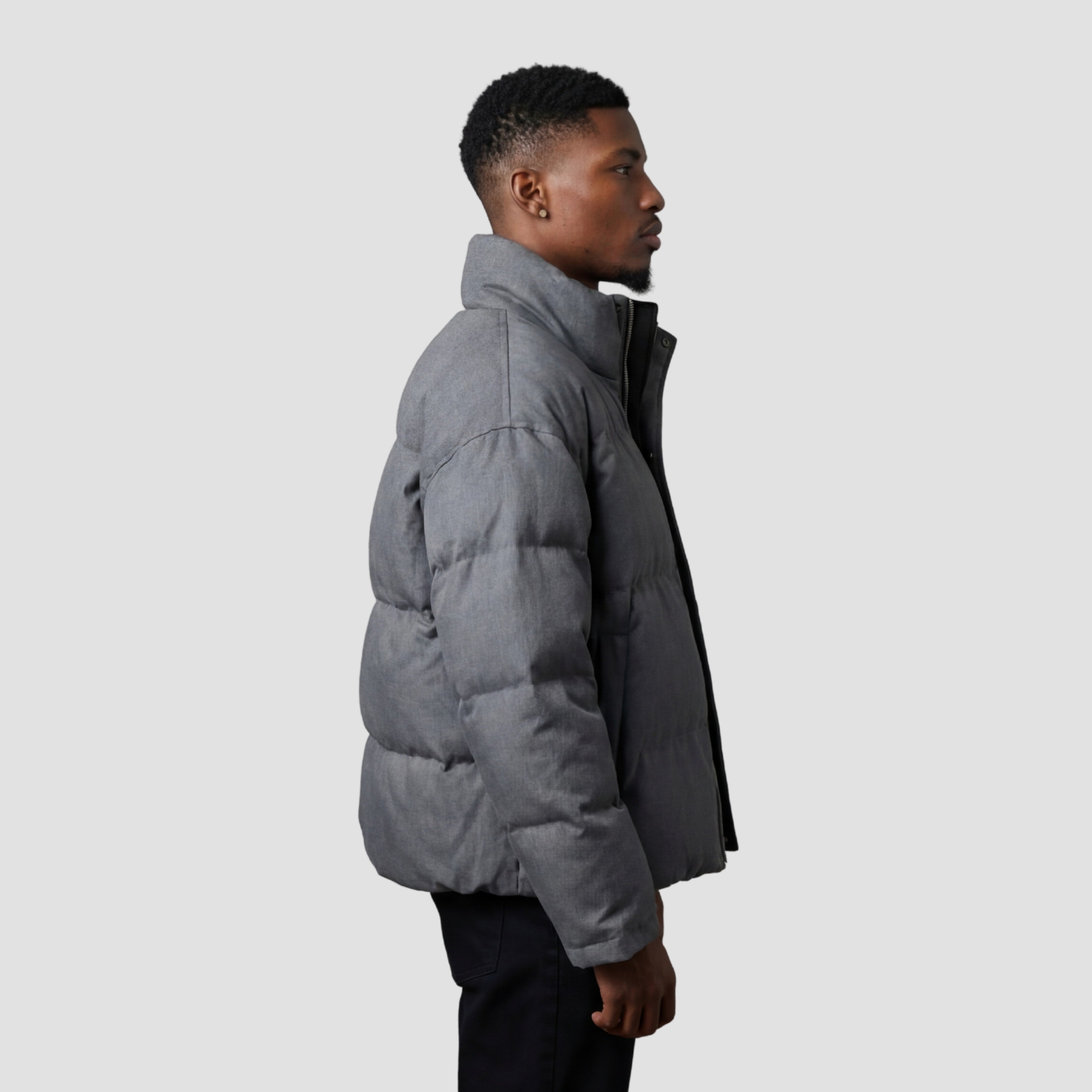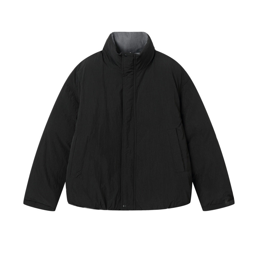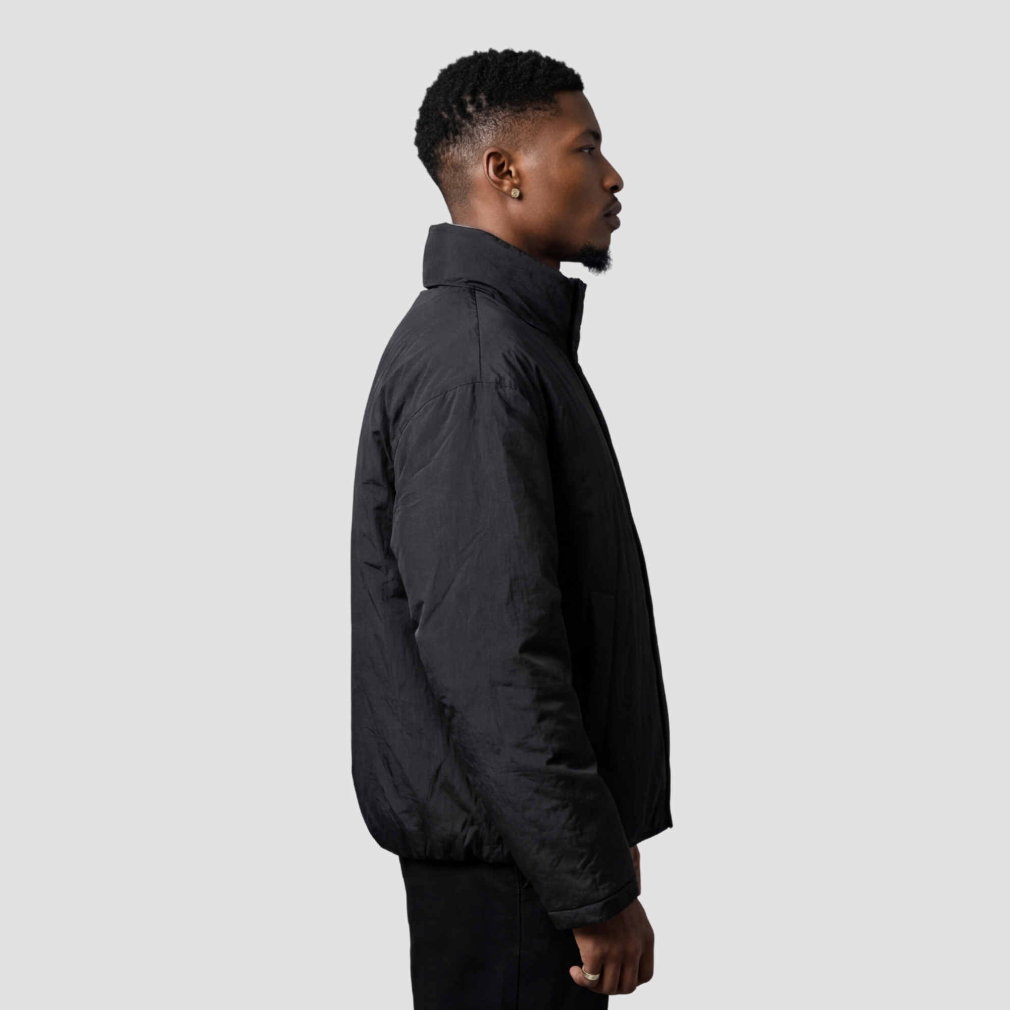 Two jackets in one, the Vincent is a reversible padded jacket that flips between Black and Grey for effortless versatility. Built from 100% polyester with a full polyester lining and fill, it delivers substantial winter insulation in a clean, minimal silhouette. The loose fit and stand collar create a structured, modern profile that works on either side.